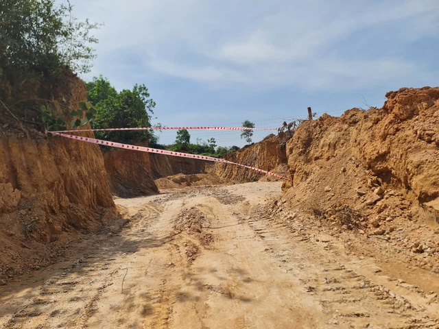 Cơ quan chức năng giăng dây tại khu vực phát hiện khai thác đất trái phép.