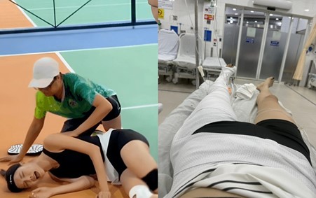 Người mẫu Kỳ Hân gặp chấn thương, gãy xương đùi khi chơi pickleball. (Ảnh FBNV).