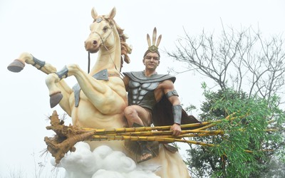Bức tượng khắc họa hình ảnh Thánh Gióng uy nghi, tay cầm khóm tre, cưỡi trên lưng ngựa đã thu hút sự chú ý của nhiều người đến chiêm ngưỡng.