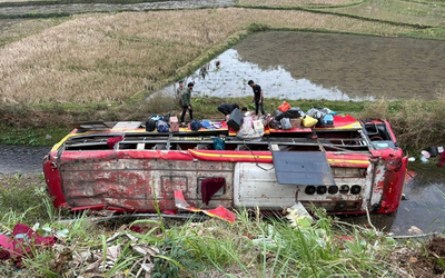 Vụ lật xe khách chở 22 người: Tài xế khai buồn ngủ nên mất lái
