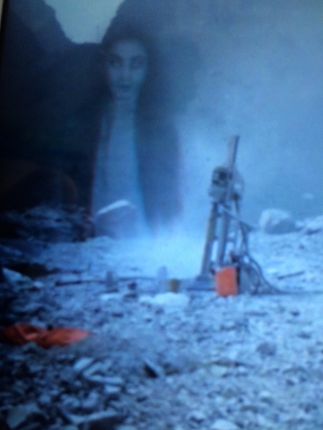 Bức ảnh người thợ xẻ chụp, được cho là Ngọc Hoa công chúa hiển linh và đòi xây đền thờ từ một mỏ đá trên núi Bà Đầm .