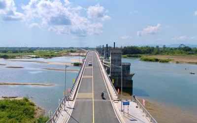 Sau nhiều lần lỡ hẹn, cầu trên đập dâng sông Trà Khúc được thông xe, kết nối đôi bờ, giúp rút ngắn khoảng cách di chuyển.