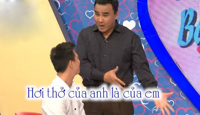 Lúc này, Quyền Linh đã đứng dậy, bước về phía Khánh Hưng và xúi giục: "Rồi! Nói luôn. Hơi thở của anh là của em. Nhà cửa xe cộ của anh là của em. Nói đi. Làm luôn!". Nghe đến đây, khán giả nhớ đến lời cầu hôn của Trường Giang dành cho Nhã Phương tại giải Mai Vàng cách đây không lâu. "Anh biết, em tới với anh là em nhận nhiều cay đắng không thuộc về em... Từ hôm nay, tất cả mọi thứ của anh, tiền bạc, xe cộ, nhà cửa, kể cả hơi thở của anh cũng là của em", Trường Giang từng thổ lộ.