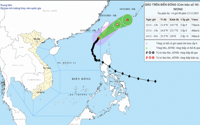 Theo Trung tâm Dự báo khí tượng thủy văn quốc gia, hồi 13h ngày 12/11, vị trí tâm bão ở vào khoảng 21,8 độ Vĩ Bắc; 119,7 độ Kinh Đông, trên vùng biển phía Đông Bắc của khu vực Bắc Biển Đông. Sức gió mạnh nhất vùng gần tâm bão mạnh cấp 8-9 (62-88km/giờ), giật cấp 11. Di chuyển theo hướng Bắc Đông Bắc, tốc độ khoảng 10km/h.