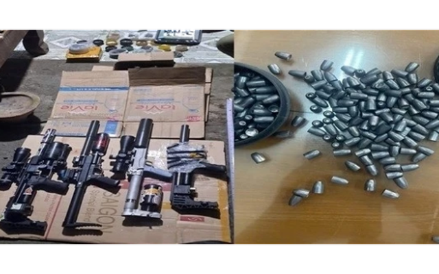 Khám xét nơi ở của các đối tượng, công an thu giữ 3 khẩu súng hơi, 1 khẩu súng Rulo, 22 hộp đạn các loại, cùng nhiều linh kiện dùng lắp ráp súng.