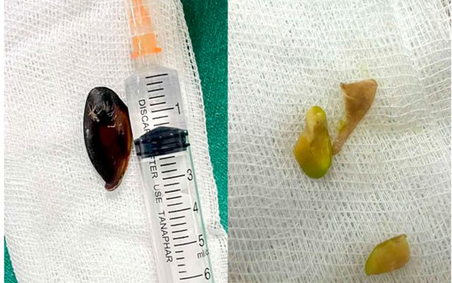 Hạt hồng xiêm được lấy ra khỏi đường thở bệnh nhi. Ảnh: BVCC.