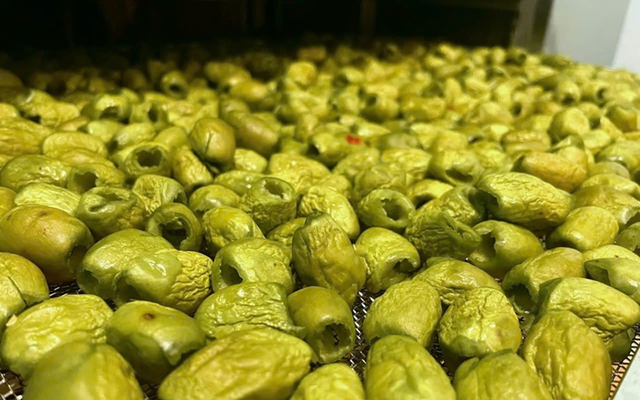 Tiết lộ bí quyết làm giàu, anh Thanh cho rằng nằm ở khâu chọn nguyên liệu. Cà na phải là quả tươi vừa thu hoạch, được ướp đá và vận chuyển về xưởng trong vòng 6 tiếng để giữ màu xanh tự nhiên. Tại xưởng, quả được đưa vào máy tách hạt ngay, sau đó rửa qua máy ozone, tẩm ướp đường và cấp đông.