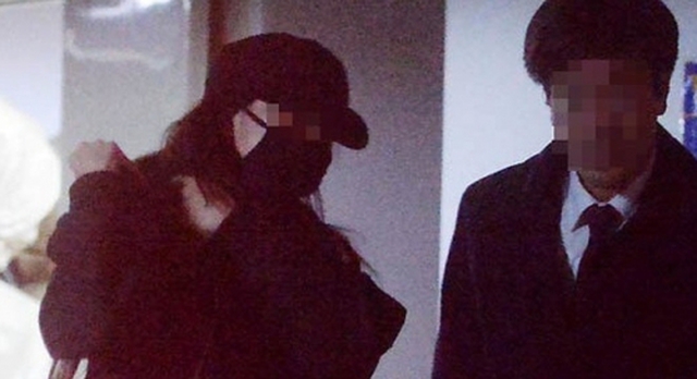 Nữ ca sĩ C đeo khẩu trang kín mít khi đến sở cảnh sát để trả lời thẩm tra