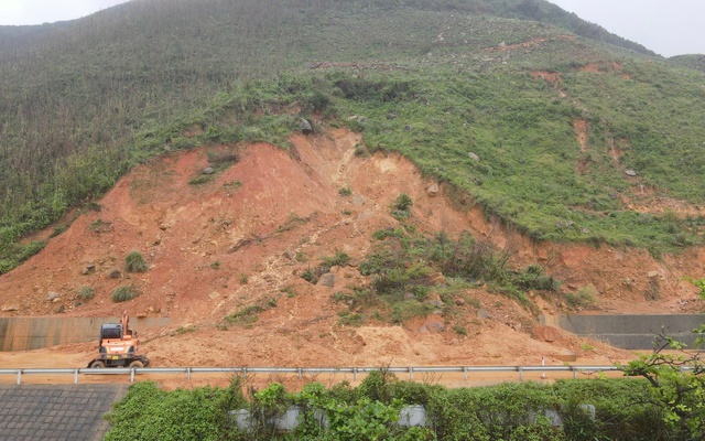 Trước đó, vào sáng 4/11, tại vị trí Km84+700 trên tuyến đường tỉnh 547 (tuyến đường ven biển Hà Tĩnh), hàng nghìn mét khối đất đá trượt xuống vùi lấp toàn bộ mặt đường.