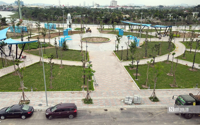 Nhà thầu tập trung hoàn thành những hạng mục cuối để kịp khánh thành Dự án công viên cây xanh nút giao Nam cầu Bính dịp kỷ niệm 70 năm Ngày giải phóng Hải Phòng - Thành phố Anh hùng (Ảnh: Thái Phan).