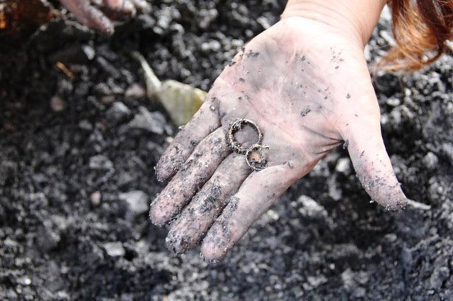 Nhẫn vàng 2 chỉ được tìm thấy trong đống tro tàn.