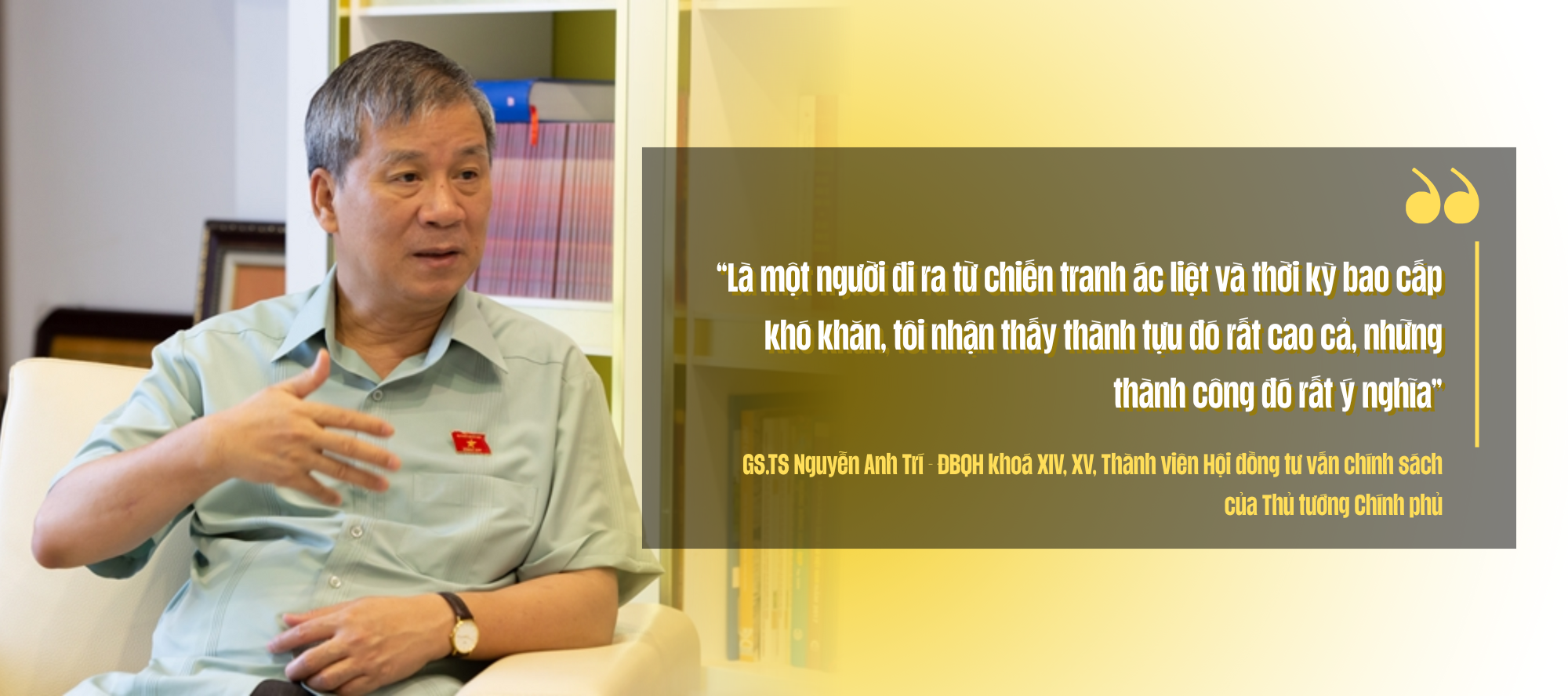 "Là một người đi ra từ chiến tranh ác liệt và thời kỳ bao cấp khó khăn, tôi nhận thấy thành tựu đó rất cao cả, những thành công đó rất ý nghĩa", ông Trí nói.