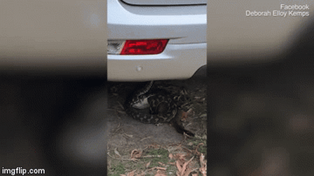 Video: Con trăn trườn xuống dưới gầm một chiếc xe hơi trước khi nuốt chửng thú mẹ