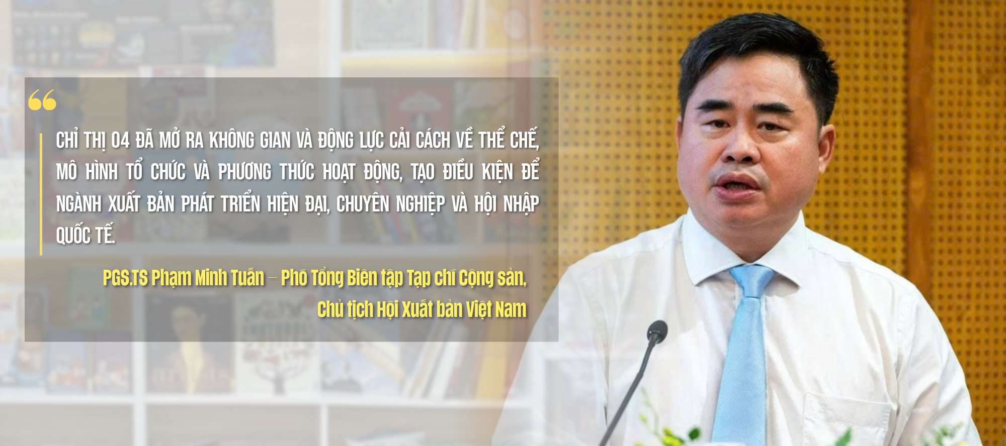 "Chỉ thị 04 là bước chuyển từ quản lý xuất bản sang phát triển ngành xuất bản, tạo cú hích để lĩnh vực này hội nhập sâu hơn với thế giới và trở thành một thành tố quan trọng của công nghiệp văn hóa.
