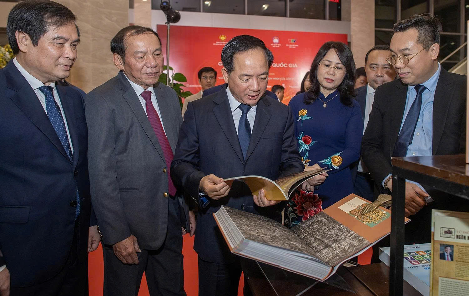 Ông Trịnh Văn Quyết - Ủy viên Bộ Chính trị, Bí thư Trung ương Đảng, Trưởng ban Tuyên giáo và Dân vận Trung ương và lãnh đạo các bộ, ngành tham quan trưng bày các cuốn sách đoạt Giải thưởng Sách Quốc gia lần thứ VIII.