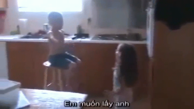 Trong clip, cậu bé đã không ngừng khóc và liên tục nói "không" khi cô bạn nhỏ nhất quyết đòi lấy mình. Thậm chí, cô bạn này đã dùng kẹo để dụ dỗ nhưng cậu vẫn kiên quyết từ chối kết hôn với nàng.