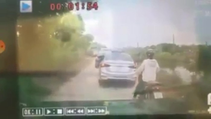 Sự việc được cho là xảy ra trên quốc lộ 179, đoạn qua khu vực Gia Lâm, Hà Nội và đã được camera hành trình của chiếc ô tô đi phía sau ghi lại.