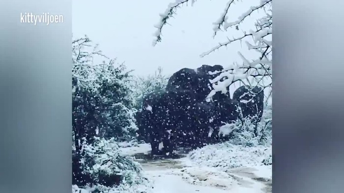 Các nhiếp ảnh gia tập trung tại Nam Phi để ghi lại cảnh tượng các loài động vật nhiệt đới tản bộ trong những khu rừng bị bao phủ bởi tuyết. Nguyên nhân dẫn đến hiện tượng hi hữu là do một đợt lạnh đột ngột cuối đông trước khi mùa xuân đến trên khu vực Karoo.