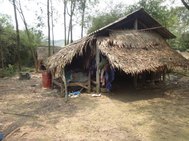 Gia đình sống dưới mái nhà tranh lụp xụp.