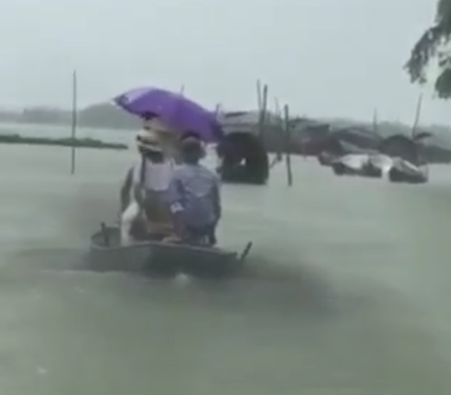 Ngày 22/7, một clip ghi lại cảnh cô dâu, chú rể đội mưa ngồi trên thuyền chông chênh đi trong nước lũ cùng rất đông người thân, bạn bè đăng tải lên mạng xã hội. Ngay sau khi đăng tải, clip nhận được rất nhiều lượt chia sẻ, nhiều bạn trẻ thích thú bày tỏ đây là một đám cưới độc đáo trong mùa mưa lũ. Tuy nhiên, bên cạnh đó cũng có nhiều ý kiến cho rằng, tổ chức đám cưới trong thời tiết mưa lũ như vậy là rất nguy hiểm.