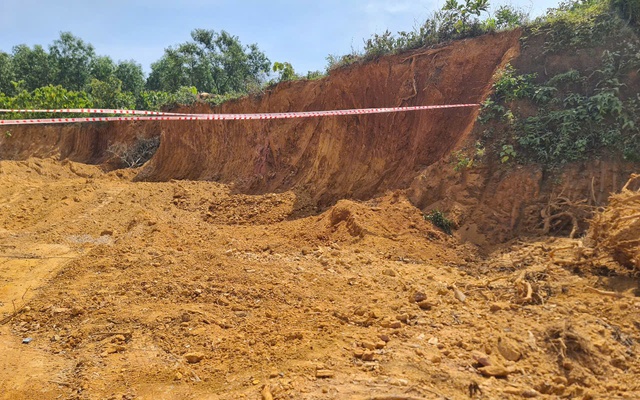 Cơ quan chức năng giăng dây tại khu vực phát hiện khai thác đất trái phép.