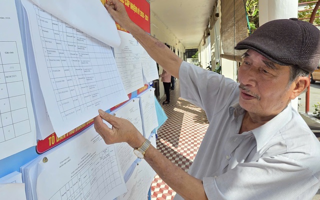 Trước tấm bảng lớn đặt ngay ngắn, ông Bảy chậm rãi lần giở từng trang danh sách, dò từng dòng họ tên. "Tôi xem kỹ lại tên mình và mấy người trong nhà có bị sai sót gì không. Mình đi bầu cử bao nhiêu năm rồi, lần nào cũng vậy, phải kiểm tra cho chắc", ông nói.