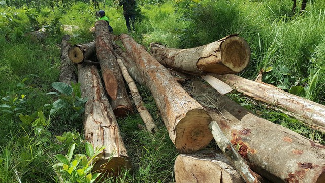 Nhiều cây gỗ có đường kính lớn bị lâm tặc triệt hạ.