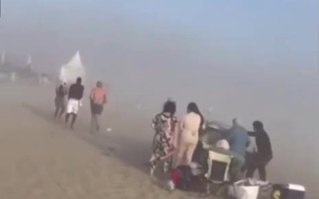Theo Daily Mail, hình ảnh trong video, một cơn lốc xoáy bất ngờ hình thành, tạo thành vòi rồng cuộn xoáy với sức gió mạnh, cuốn bay hàng loạt ô dù và cát trên bãi biển. Du khách trong trang phục tắm biển, vội vã thu dọn đồ đạc và chạy tán loạn tìm nơi tránh nạn, nhiều người cố ôm lấy hành lý và trẻ nhỏ giữa cơn hỗn loạn.
