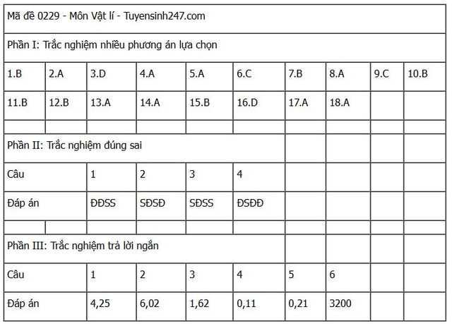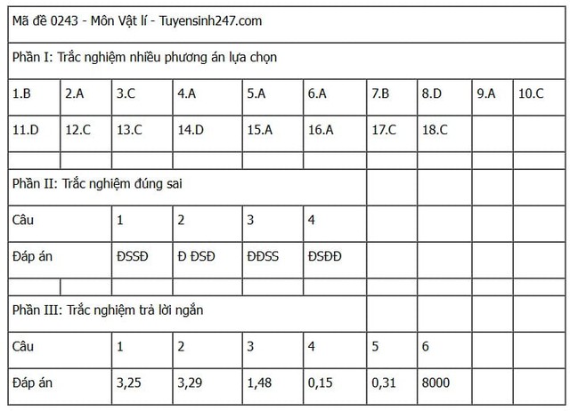 Lưu ý: Đáp án trên không phải là đáp án chính thức của Bộ Giáo dục và Đào tạo!