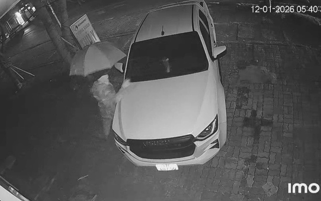Nghi ngờ có người phá hoại, anh Cương kiểm tra camera an ninh và phát hiện khoảng 5h40 sáng cùng ngày, một người đàn ông che dù, tiếp cận chiếc ô tô đang đỗ trên vỉa hè trước nhà. Người này dùng một vật nghi bằng kim loại liên tiếp đập mạnh vào kính lái và hệ thống đèn xe rồi rời đi.