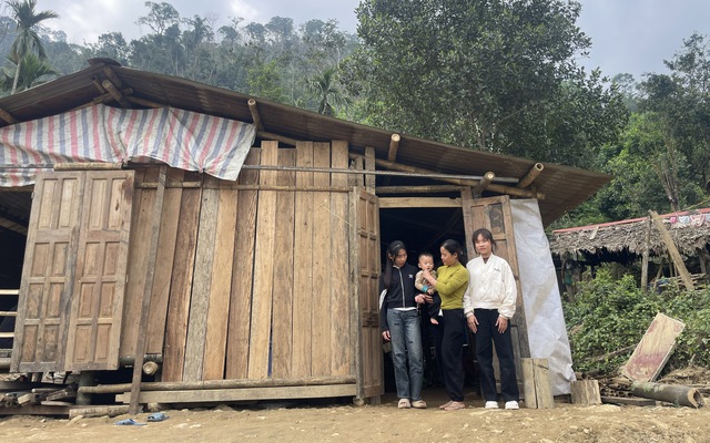 Cách đó không xa, gia đình chị Vi Thị Thắm (32 tuổi) sống trong một lán tạm được dựng từ những tấm gỗ nhặt lại sau lũ. Mất trắng nhà cửa và tài sản tích góp, cả gia đình từng ở nhờ người thân, dự định chờ có đất tái định cư rồi mới làm nhà. Tuy nhiên, chị được yêu cầu, chỉ khi dựng nhà ra lên thì mới được nhận tiền hỗ trợ.