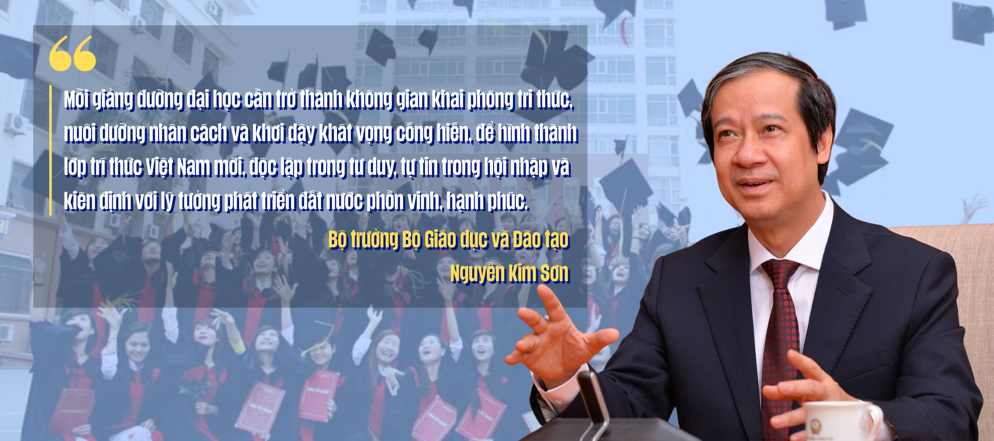 Trao đổi với Người Đưa Tin (NĐT), Bộ trưởng Bộ Giáo dục và Đào tạo Nguyễn Kim Sơn nhấn mạnh, đây không chỉ là một định hướng mà còn là một yêu cầu mới, mạnh mẽ và cấp thiết, mà mục tiêu là hình thành lớp trí thức Việt Nam mới, độc lập trong tư duy, tự tin trong hội nhập và kiên định với lý tưởng phát triển đất nước phồn vinh, hạnh phúc.