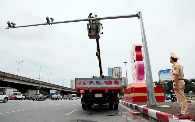 Sáng 23/10, Phòng Cảnh sát giao thông (CSGT) - Công an Thành phố Hà Nội tiếp tục triển khai lắp đặt hệ thống camera tích hợp trí tuệ nhân tạo (AI) tại nút giao Phạm Hùng - Khuất Duy Tiến.