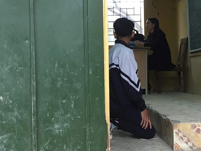 Hình ảnh học sinh bị phạt quỳ lan truyền trên mạng xã hội.