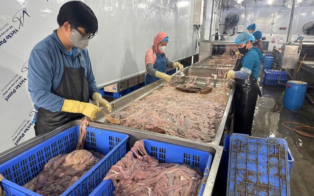 Kiểm tra kho lạnh, lực lượng chức năng ghi nhận khoảng 59 tấn lòng nguyên liệu được cấp đông trong 3 container từ 4 - 6 tháng; 1 tấn lòng đang trong quá trình sơ chế; 3,6 tấn lòng đã thành phẩm.