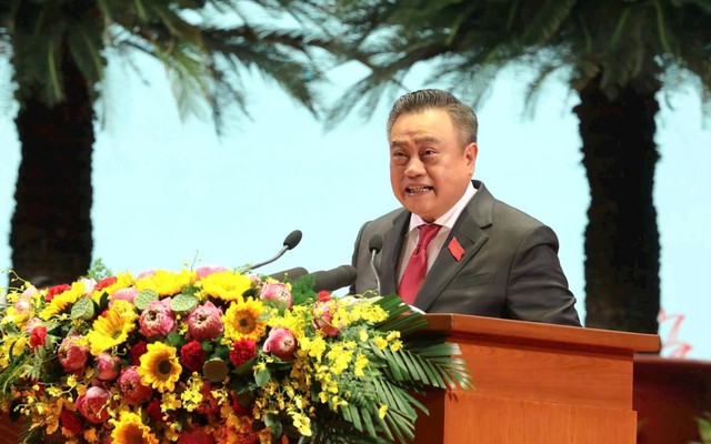 Chủ tịch UBND Thành phố Hà Nội Trần Sỹ Thanh báo cáo kiểm điểm công tác lãnh đạo, chỉ đạo của Ban chấp hành Đảng bộ Thành phố Hà Nội khóa XVII, nhiệm kỳ 2020-2025.