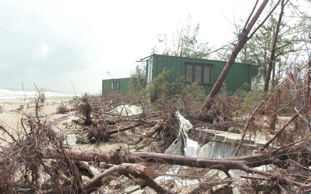 Cả dãy rừng cây phi lao ven biển bị tan hoang như một bãi chiến trường. Hàng ngàn cây phi lao nhiều năm tuổi với đủ kích thước, cao thấp khác nhau đã bị bật trơ gốc, gãy đổ, xiêu vẹo nằm la liệt.