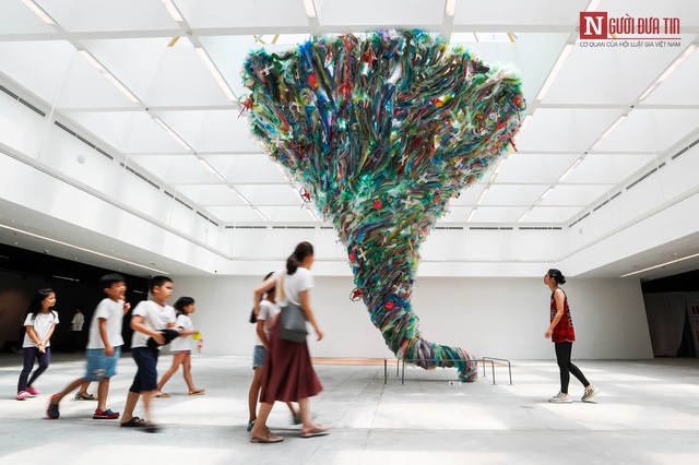 Nhiều gia đình đến triển lãm tham quan và dạy con mình để truyền tải thông điệp mạnh mẽ về tác hại của rác thải nhựa.