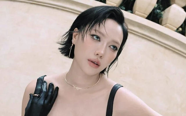 Trong khung hình, nữ diễn viên xuất hiện với diện mạo sắc sảo và đầy khí chất. Cô chọn bộ trang phục đen ôm sát tôn dáng, kết hợp cùng găng tay da dài và kiểu tóc ngắn cá tính. Phong cách trang điểm tông nude nhẹ nhàng nhưng vẫn đủ giúp gương mặt cô nổi bật với đôi mắt sâu, làn da mịn và thần thái lạnh lùng hiếm thấy.