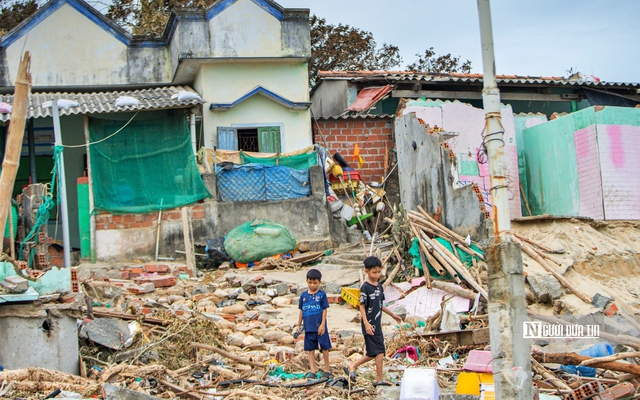Nhà cửa của người dân làng chài Xuân Thạnh (xã Phù Mỹ Đông, tỉnh Gia Lai) tan hoang sau bão số 13 (Ảnh: Thảo Quyên).