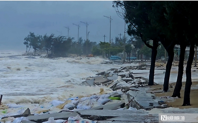 Do ảnh hưởng của hoàn lưu bão số 12 kết hợp không khí lạnh, ngày 22/10, khu vực ven biển Tp.Huế xuất hiện gió mạnh, sóng lớn, triều cường dâng cao khiến nước biển tràn vào nhiều hàng quán tại bãi biển Thuận An.