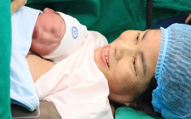 Sản phụ 60 tuổi sinh bé trai 2,8 kg tại Bệnh viện Phụ sản Trung ương. Ảnh: Thanh Hương