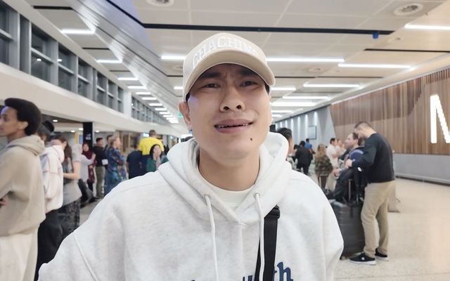 Vẻ mặt sợ hãi của Kiều Minh Tuấn sau khi bị an ninh sân bay tại Úc giữ lại.