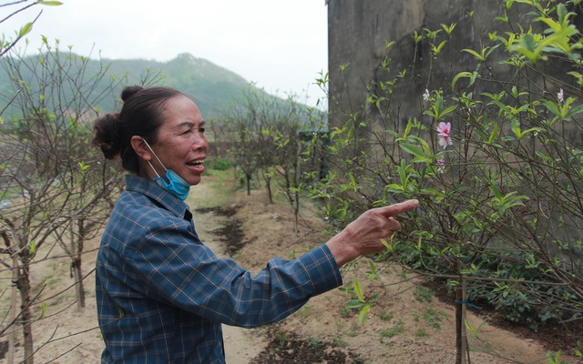 Chị Nguyễn Thị Kim Oanh (SN 1993, xóm Xuân Sơn) cho biết, gia đình đã có 3 đời trồng hoa đào phục vụ Tết Nguyên đán, nhưng chưa năm nào vất vả như đợt này. Với diện tích đất vườn rộng khoảng 3.000m2, gia đình đã đầu tư trồng hàng trăm gốc giống đào phai.