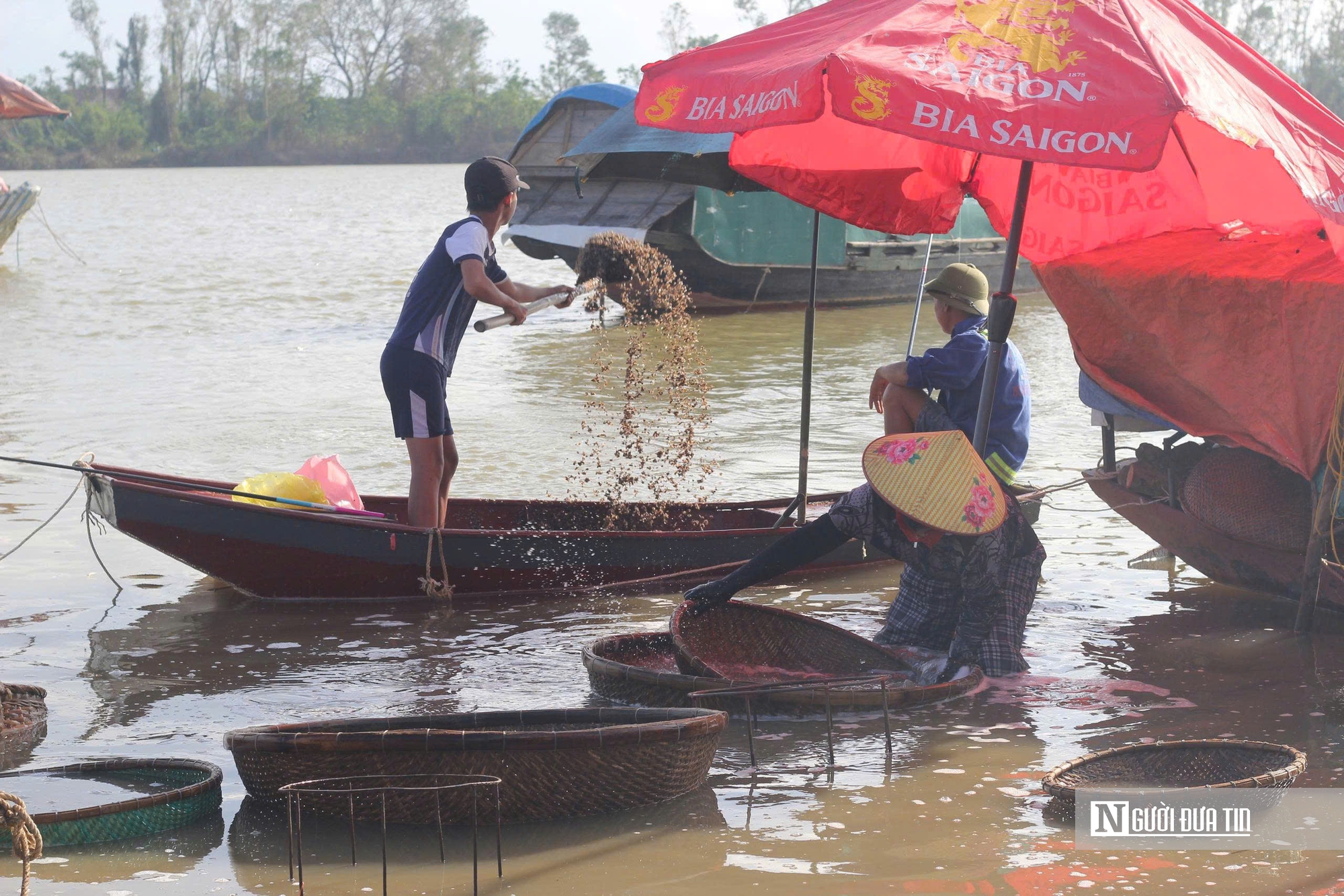 Người dân giải thích, vào mùa lũ hến thường bị nước cuốn trôi, khó thu hoạch, trong khi dắt lại sống ở vùng nước lợ, nên khi nước vừa rút cũng là thời điểm lý tưởng để đánh bắt.