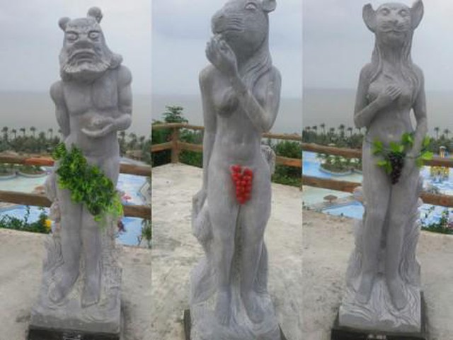 Tuy nhiên, trước bão dư luận và sự vào cuộc của cơ quan chức năng, các pho tượng đã không giữ được hình hài như thuở ban đầu. Trong quá trình lắng nghe và tiếp thu ý kiến, chúng hết được mặc đồ bơi rồi lại bị gắn nho giả xanh đỏ lên phần nhạy cảm.