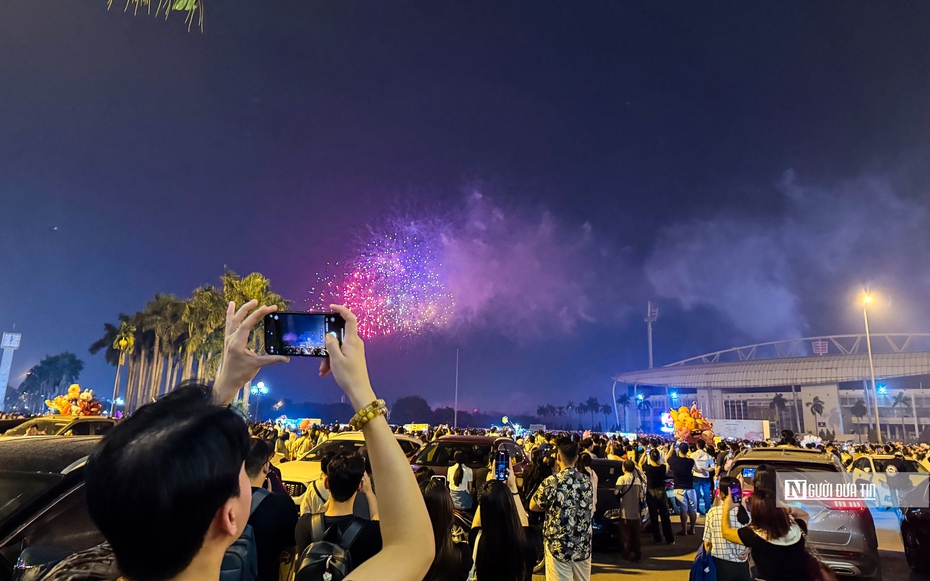 Ghi nhận của Người Đưa Tin, đúng 21h45 bầu trời khu vực đường đua F1 (phường Phú Đô, quận Nam Từ Liêm) rực sáng bởi màn pháo hoa kéo dài 15 phút để chào mừng 50 năm Ngày Giải phóng miền Nam, thống nhất đất nước (30/4/1975-30/4/2025).