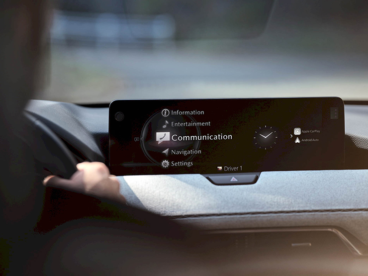Hệ thống thông tin giải trí Mazda Connect được kết nối với màn hình cảm ứng 12,3 inch và cung cấp Apple CarPlay không dây và Android Auto có dây, với hệ thống âm thanh Bose 12 loa. Các màn hình khác trong cabin là cụm đồng hồ kỹ thuật số 12,3 inch và màn hình HUD 10,4 inch.