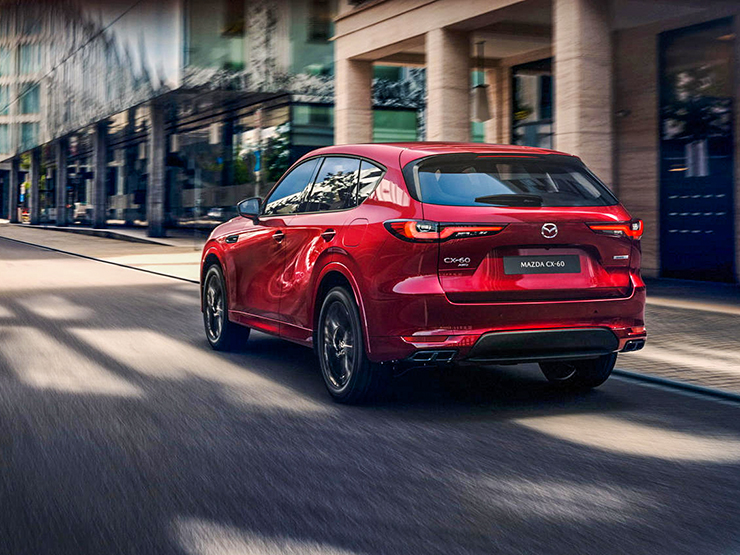 CX-60 có kích thước dài x rộng x cao lần lượt là: 4.745 x 1.890 x 1.680 mm và chiều dài cơ sở 2.870 mm, lớn hơn so với CX-50. Chiếc SUV hoàn toàn mới này có 5 chỗ ngồi và thể tích khoang hành lý đạt 570 lít. Ngoại thất của CX-60 được xây dựng dựa trên triết lý thiết kế “Kodo-Soul of Motion” của Mazda, phần cản trước và cản sau của xe được thiết kế với các chi tiết mềm mại. Đèn chiếu sáng phía trước của xe được thiết kế cách điệu kết hợp với lưới tản nhiệt cỡ lớn phía trước, hốc gió hai bên được đặt nằm dọc.