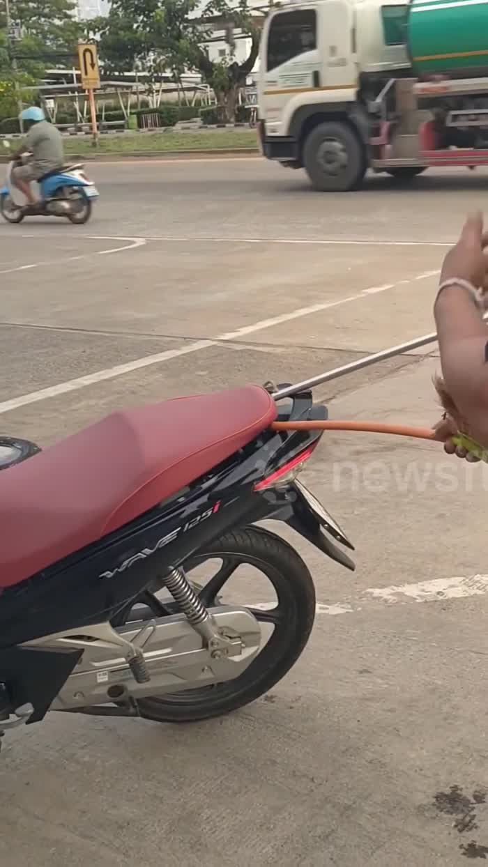 Đoạn clip ghi lại thấy các tình nguyện viên dùng một chiếc chổi để nhấc yên xe máy lên. Họ chọc vào cốp xe cho đến khi tìm thấy con rắn cuộn tròn dưới mũ bảo hiểm của Naree.